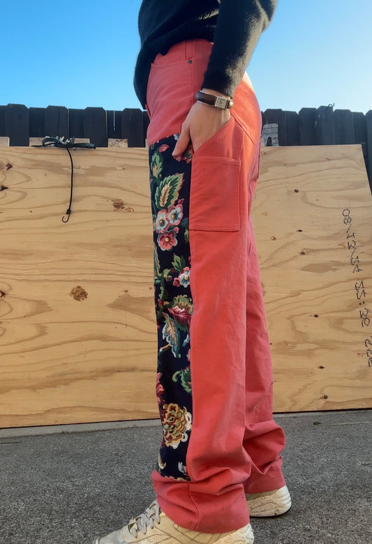 Coral/Floral Double Front Pants 28x32
